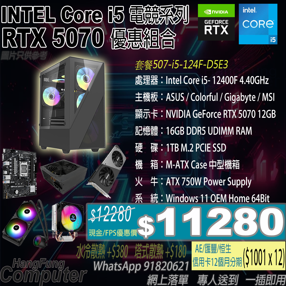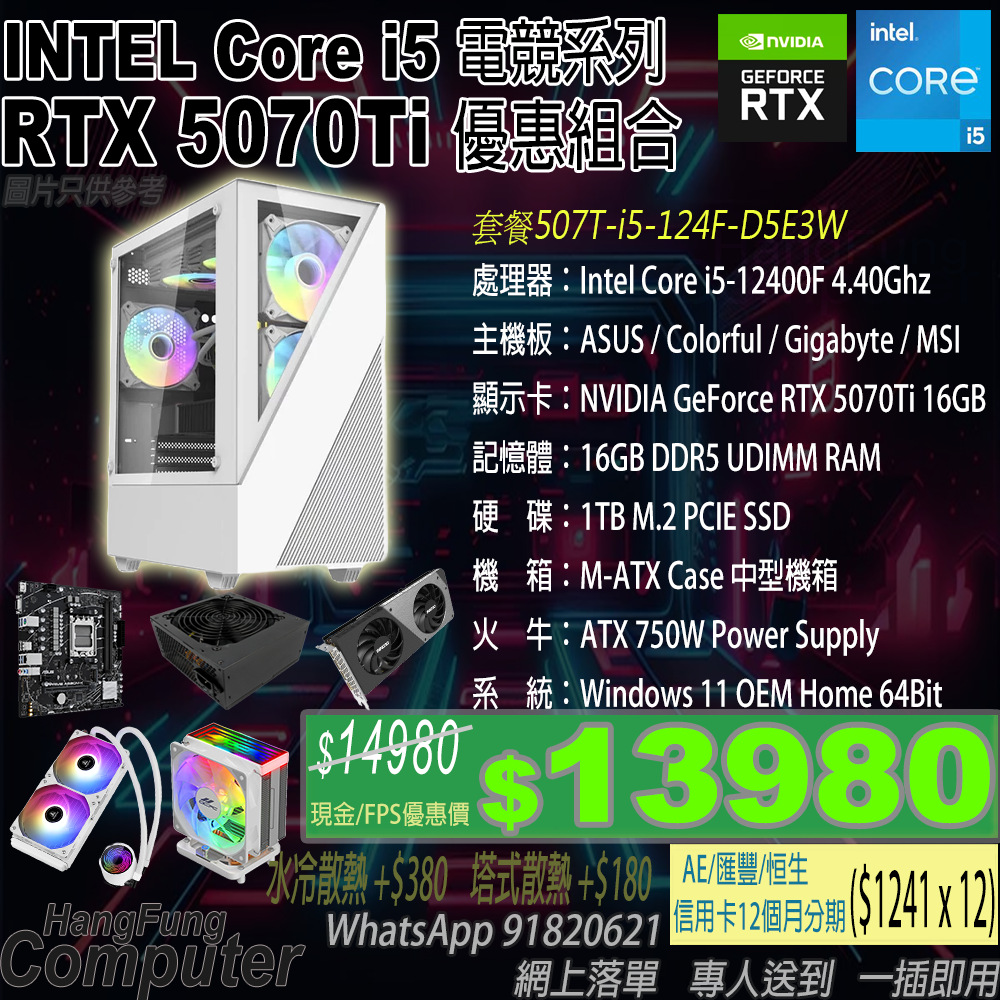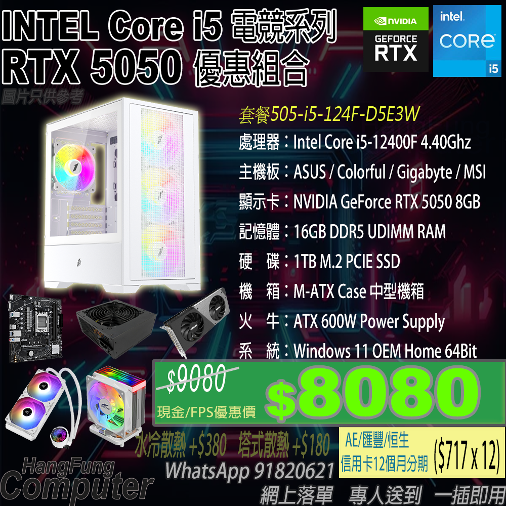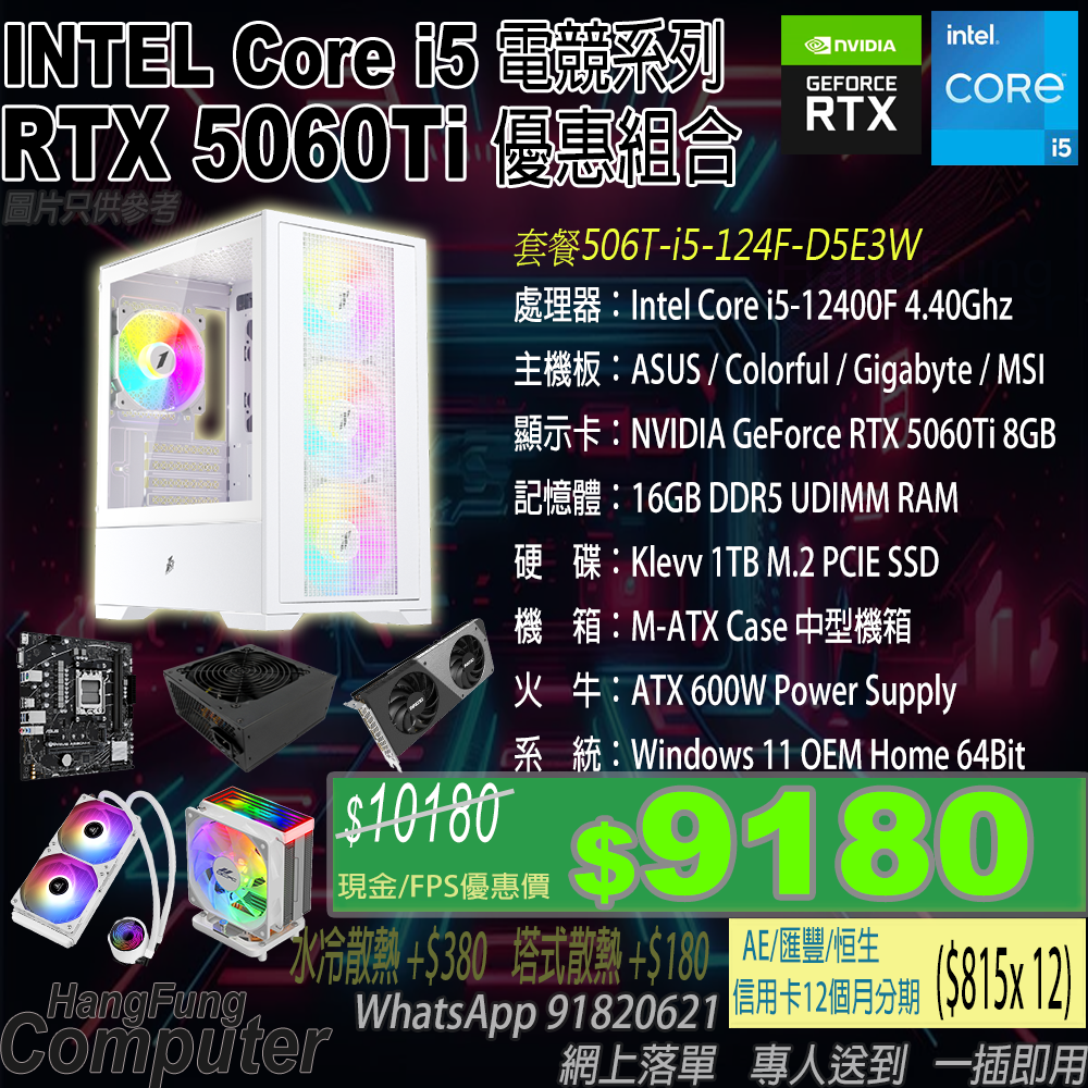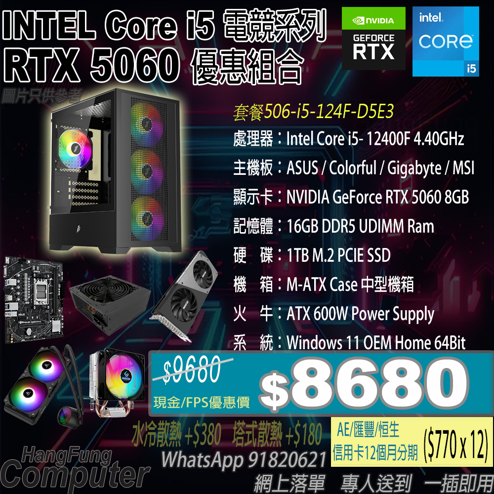 Intel Core i5 12400F + 16GB DDR5 RAM + 1TB SSD + 600W/750W 火牛