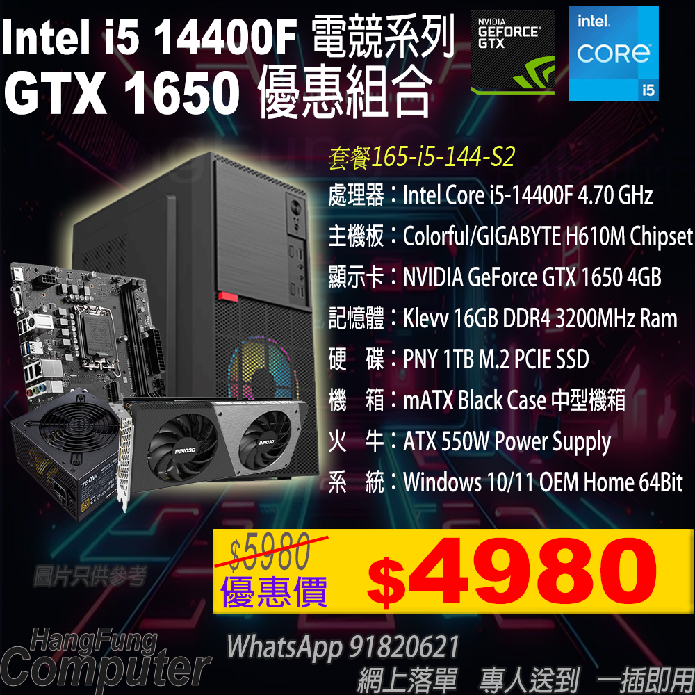 Intel i5-14400F, GTX1650, 16GB RAM, 1TB SSD 優惠電競組合