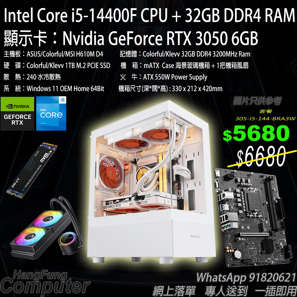 Intel i5-14400F, RTX3050 6GB , 32GB RAM, 1TB SSD 海景水冷箱電競系列