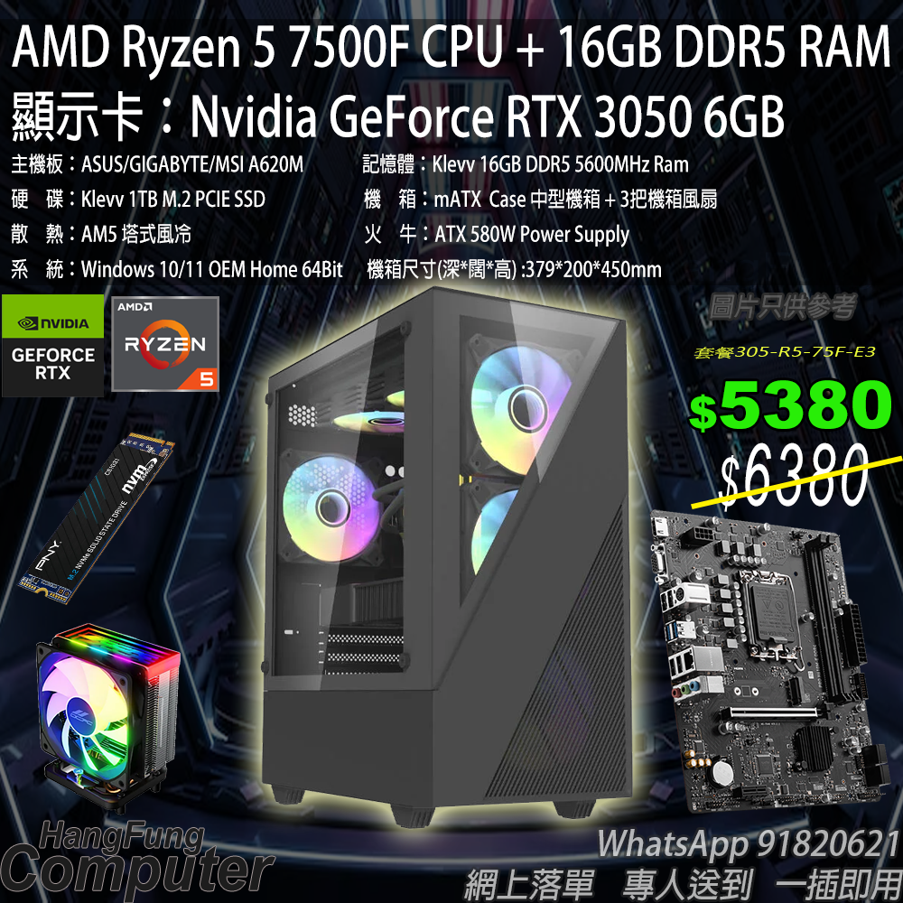AMD Ryzen 5 7500F, RTX 3050 6GB, 16GB RAM, 1TB SSD 優惠電競系列