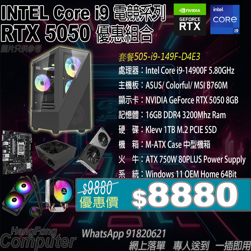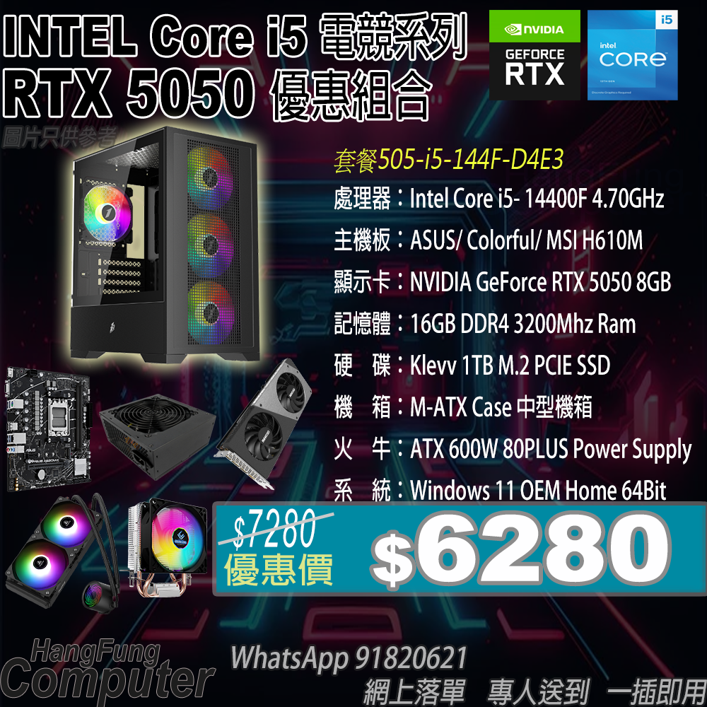Intel Core CPU, 16GB RAM, RTX 5050 電競電腦