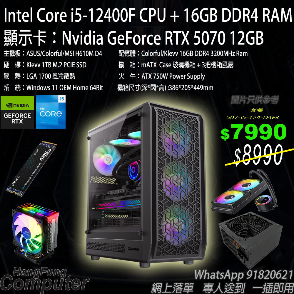 Intel i5-12400F, RTX 5070, 16GB DDR4 RAM, 1TB SSD 高階電競系列