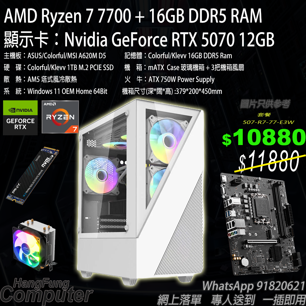 AMD Ryzen 7 7700, RTX 5070 12GB, 16GB DDR5 RAM, 1TB SSD 高階電競組合