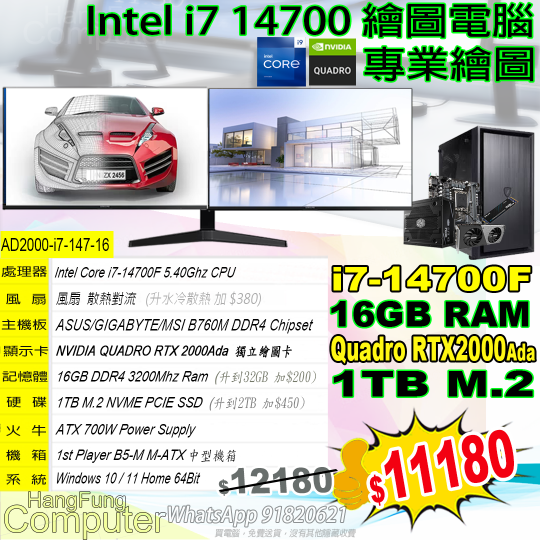 Intel i7-14700F, Quadro RTX 2000Ada, 16GB RAM, 1000GB SSD 繪圖組合