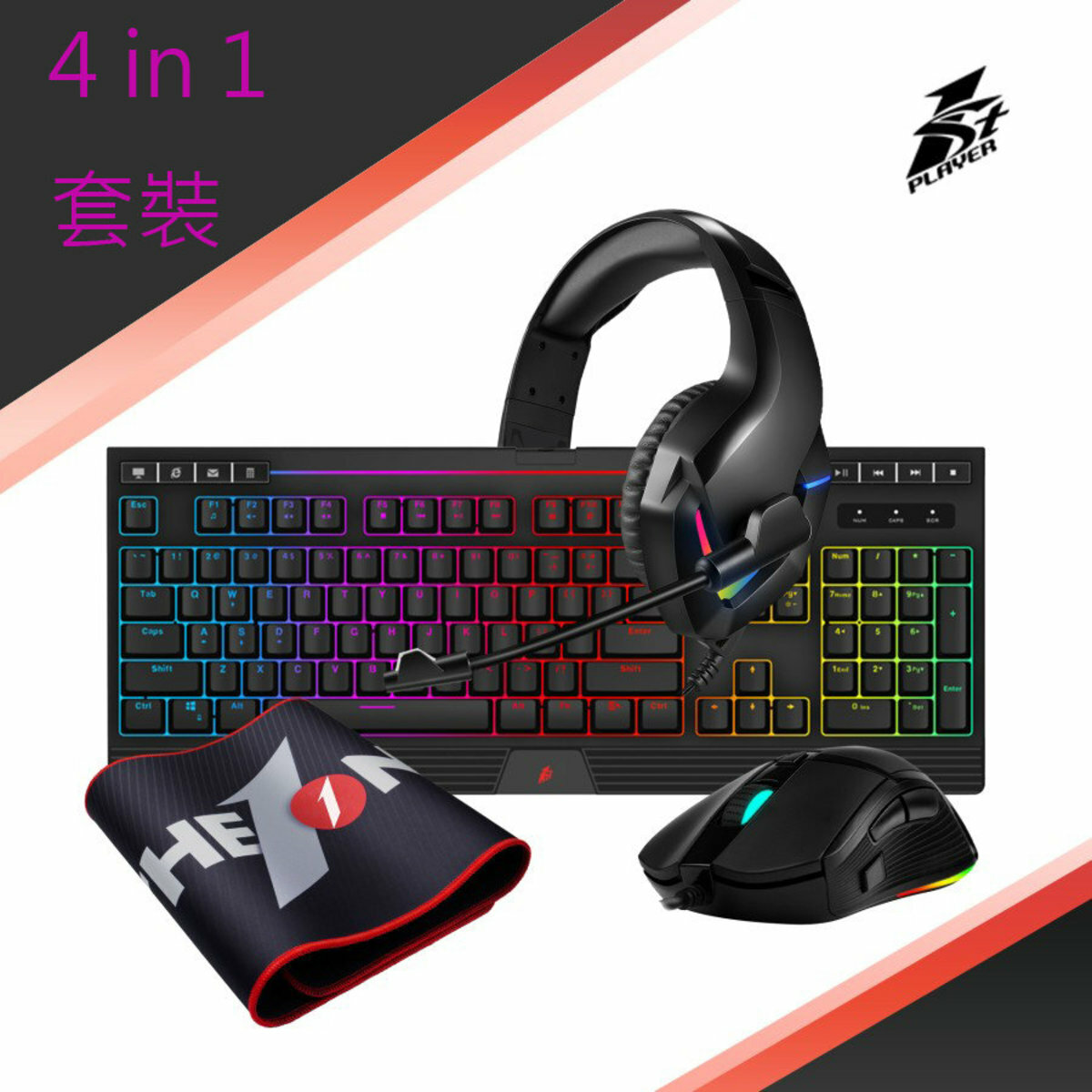 首席玩家 - DK9.0 4合1 電競遊戲鍵盤+滑鼠+耳機+鼠墊套裝