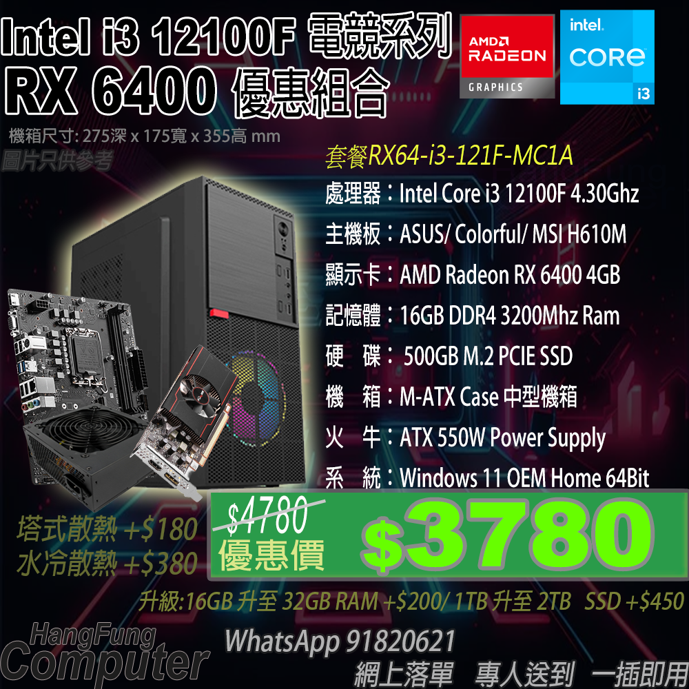 Intel i3-12100F, RX 6400, 16GB RAM, 500GB SSD 電競入門組合