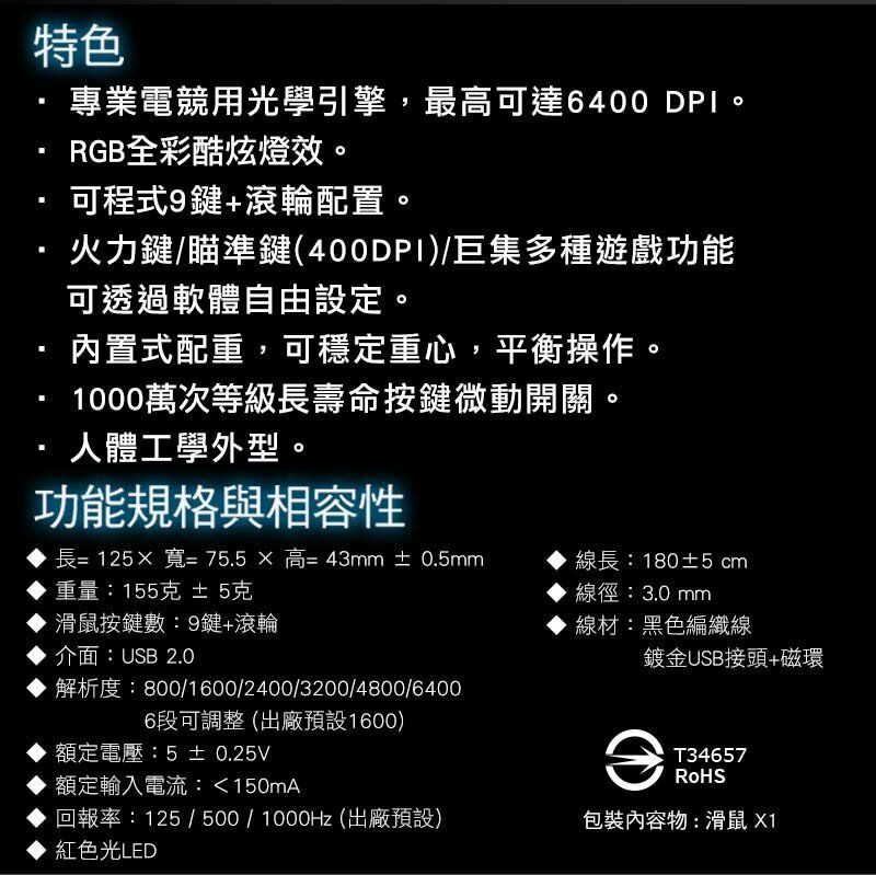 -可設定6段DPI,最大6400DPI