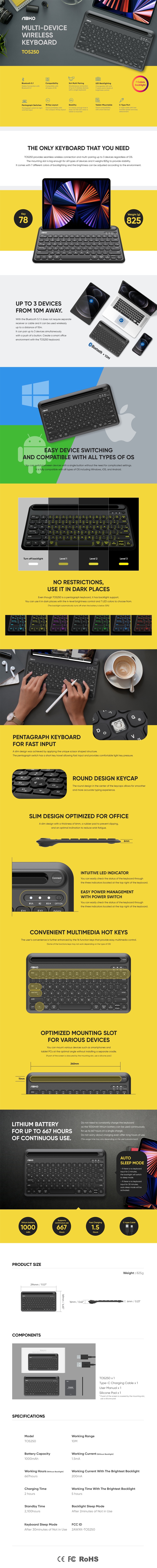 ABKO - TOS250 多設備無線鍵盤 背光鍵盤 藍芽鍵盤 支持MacOS/iOS/Andriod/Windows