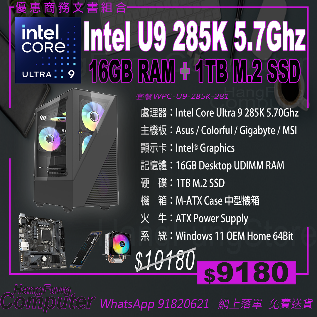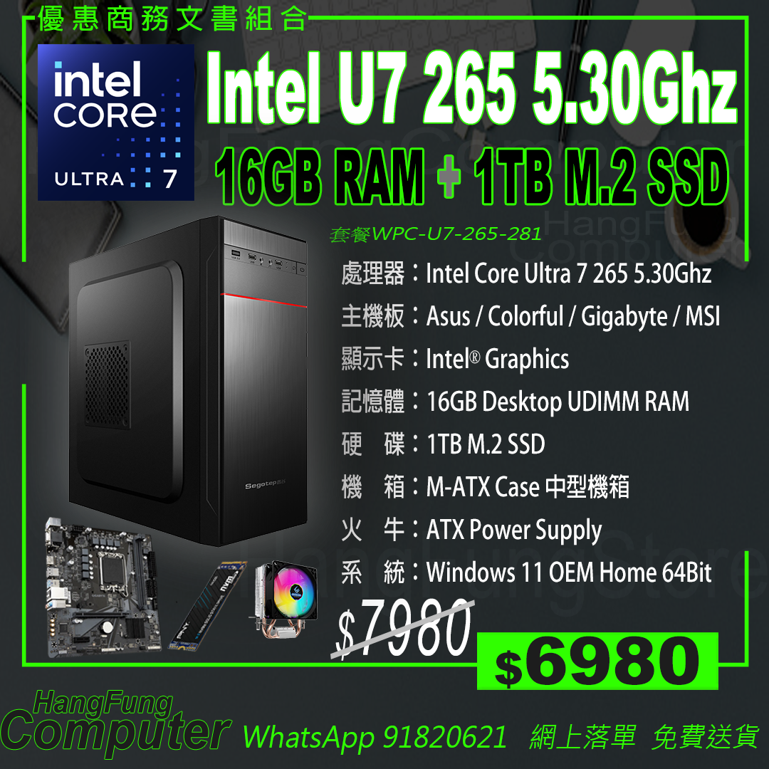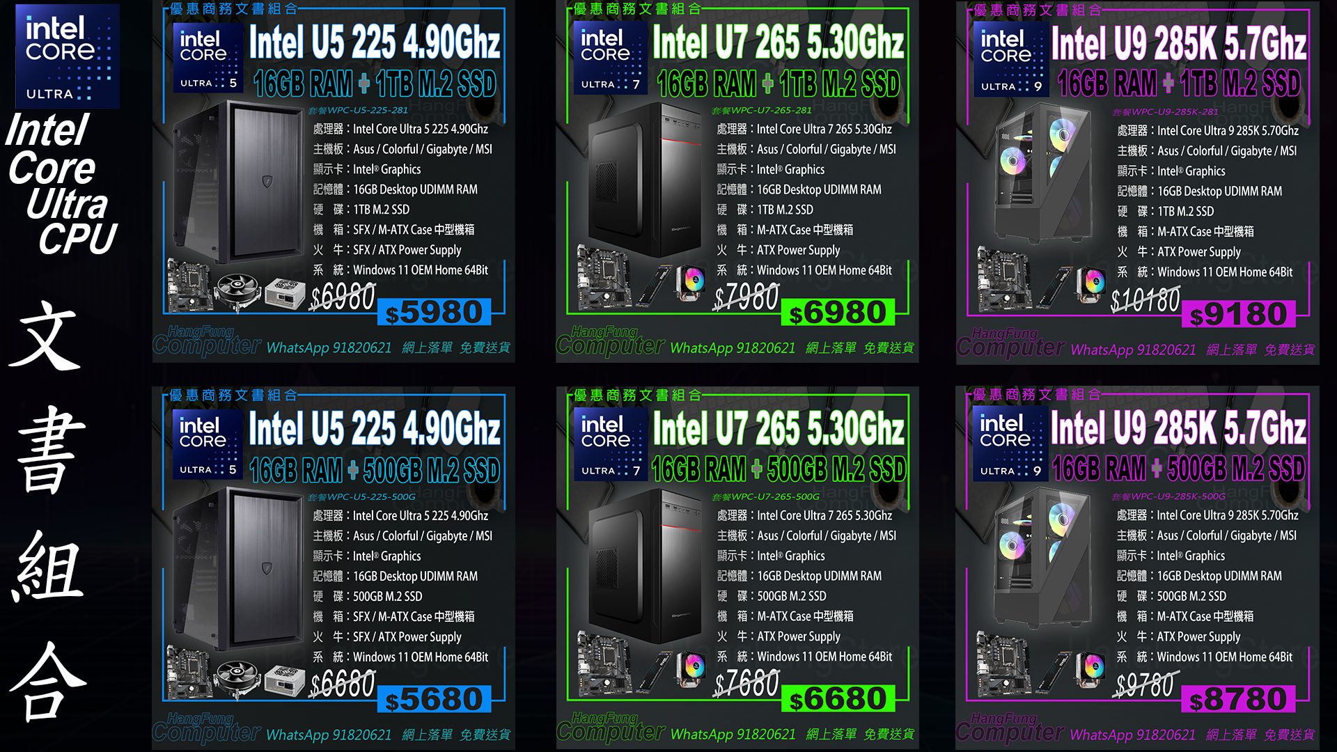 (搭配 Intel Core Ultra 5 225/Intel Core Ultra 7 265/Intel Core Ultra 9 285K)